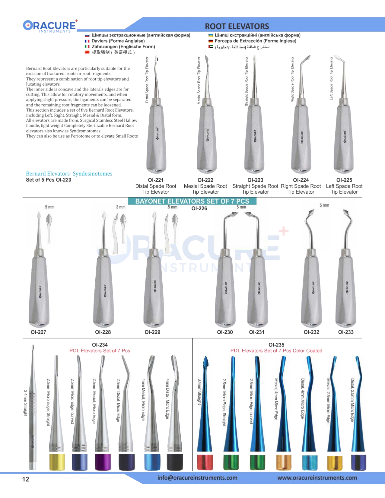 In conclusion, bayonet root elevators are essential instruments that combine advanced design, durability, and ergonomic comfort. They enable dental professionals to perform precise, efficient, and minimally invasive root extractions while maintaining high standards of safety and patient care.